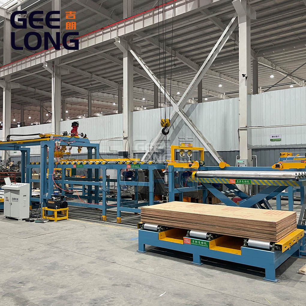 7. automatic stacking machine one set with board lifter machine with powered roller, powered roller conveyor.